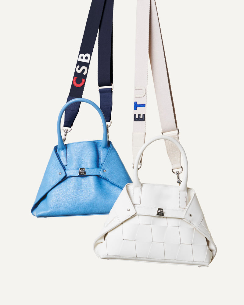 Verstellbarer schmaler Schulterriemen aus Cervo-Kalbsleder. Dank dem Hakenverschluss kann dieser mit einer Reihe von Akris-Handtaschen kombiniert werden.