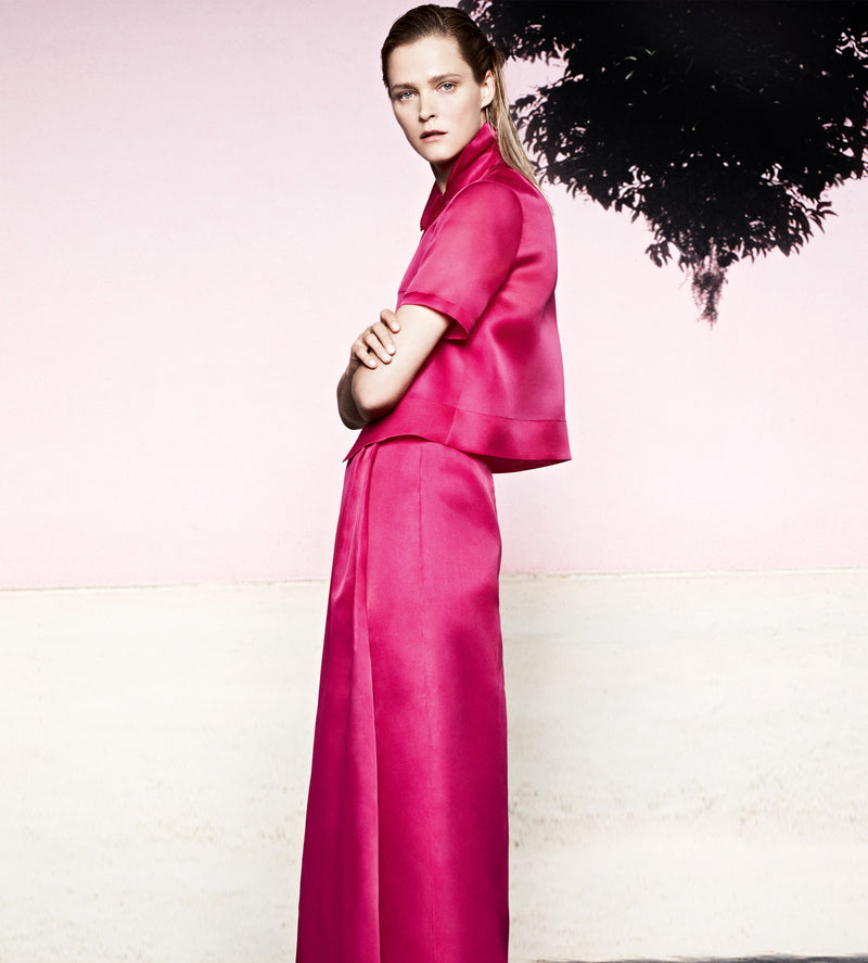 Verschiedene Stoff-Qualitäten nehmen Farben unterschiedlich an. Nicht alle Farben funktionieren in jedem Material. Bei der Auswahl der Stoffe haben Albert Kriemler und sein Team immer die Farbe im Sinn. "Ich liebe Farben, aber welche Farbe man wählt, ist letztlich eine Frage der Definition und des Stoffes, in dem die Farbe am besten aussieht", erklärt er.