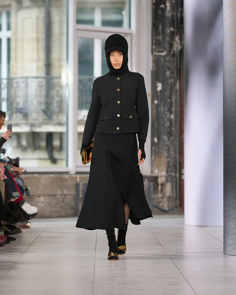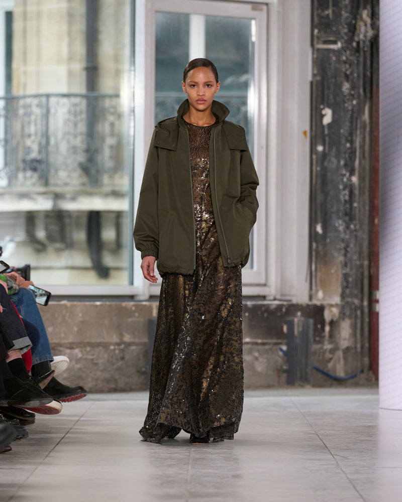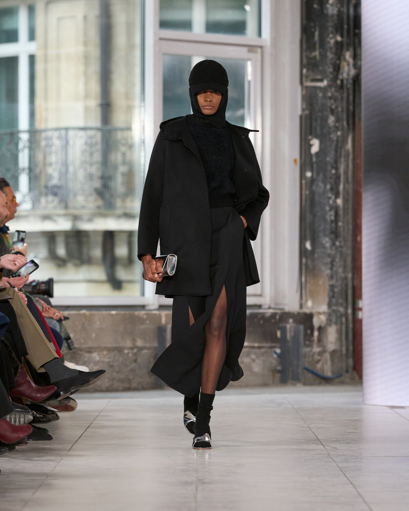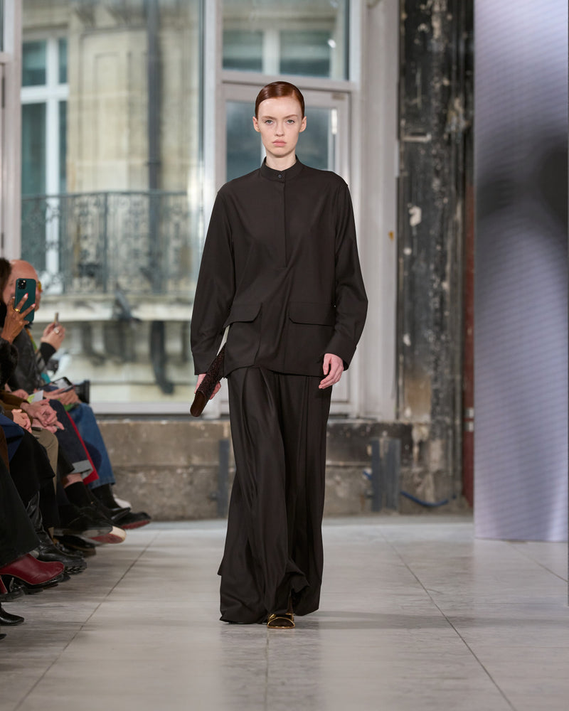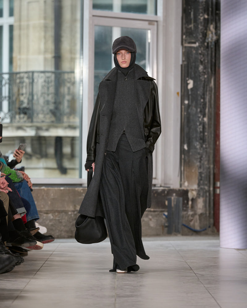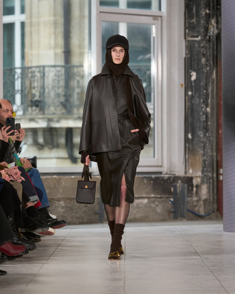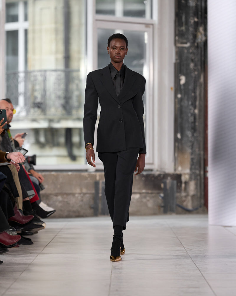 Diese Kollektion spricht nicht nur Frauen an, sondern erzählt ihre Geschichten. Sie handelt von ihren Widersprüchen und Routinen, von der nonchalanten Art und Weise, ein Cape über eine Jacke über einen Kaschmirpullover zu tragen, von der Fähigkeit, aus einem simplen Kleid ein Statement zu machen. Sie zeigt ihre Leidenschaft für Leder, ihre Liebe zu Uniformen, ihre Stärke, Sinnlichkeit und Dualität – all das ausgedrückt durch Mode.