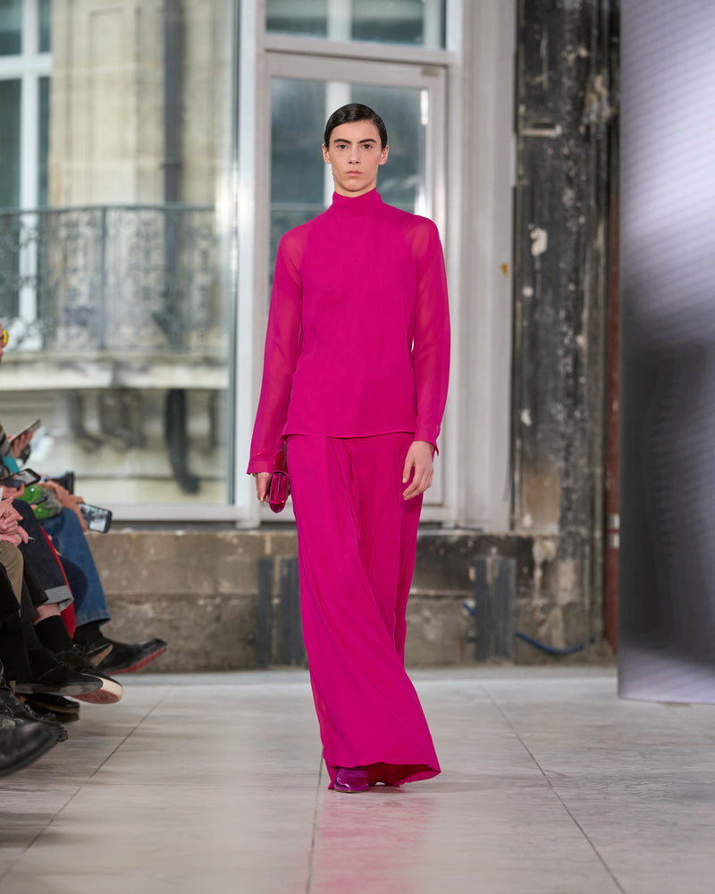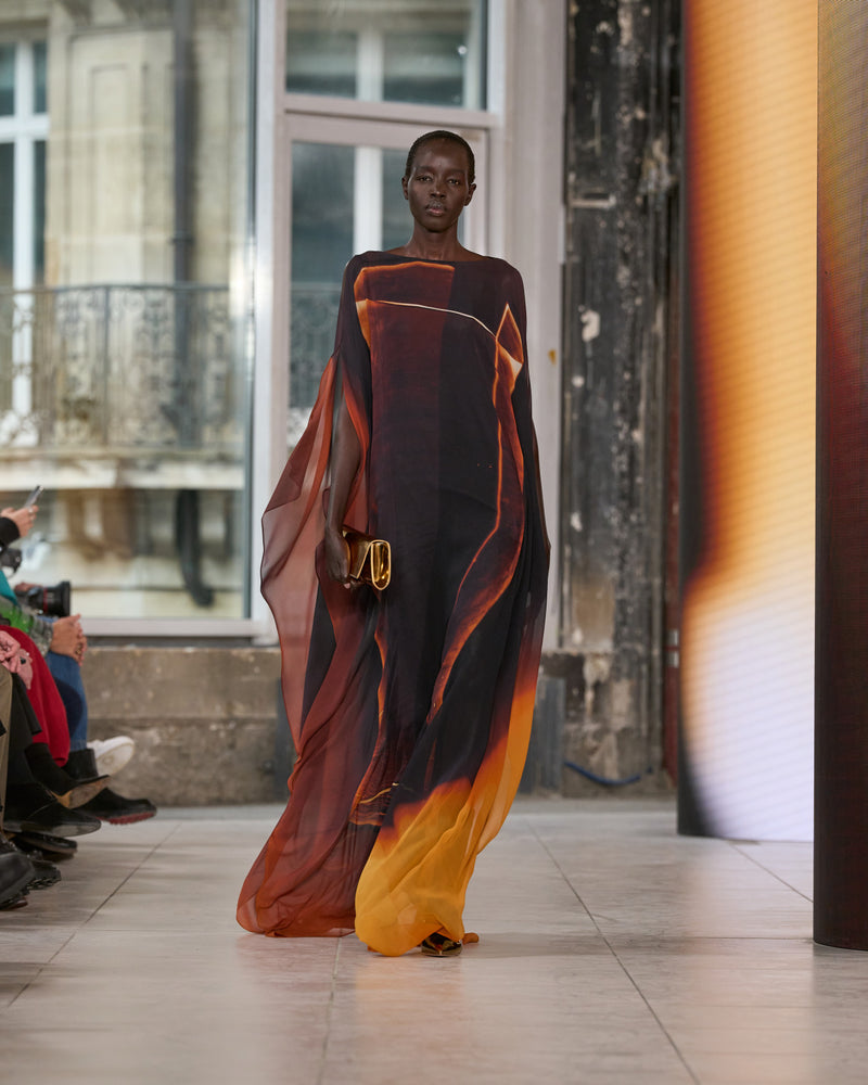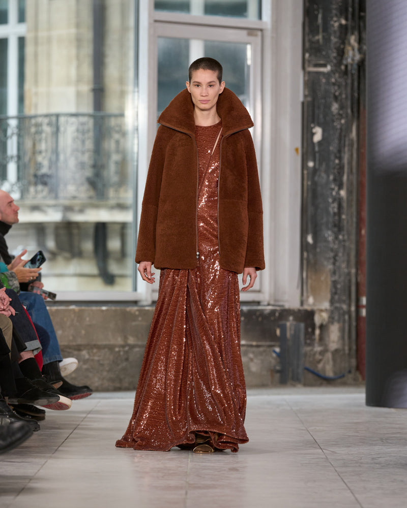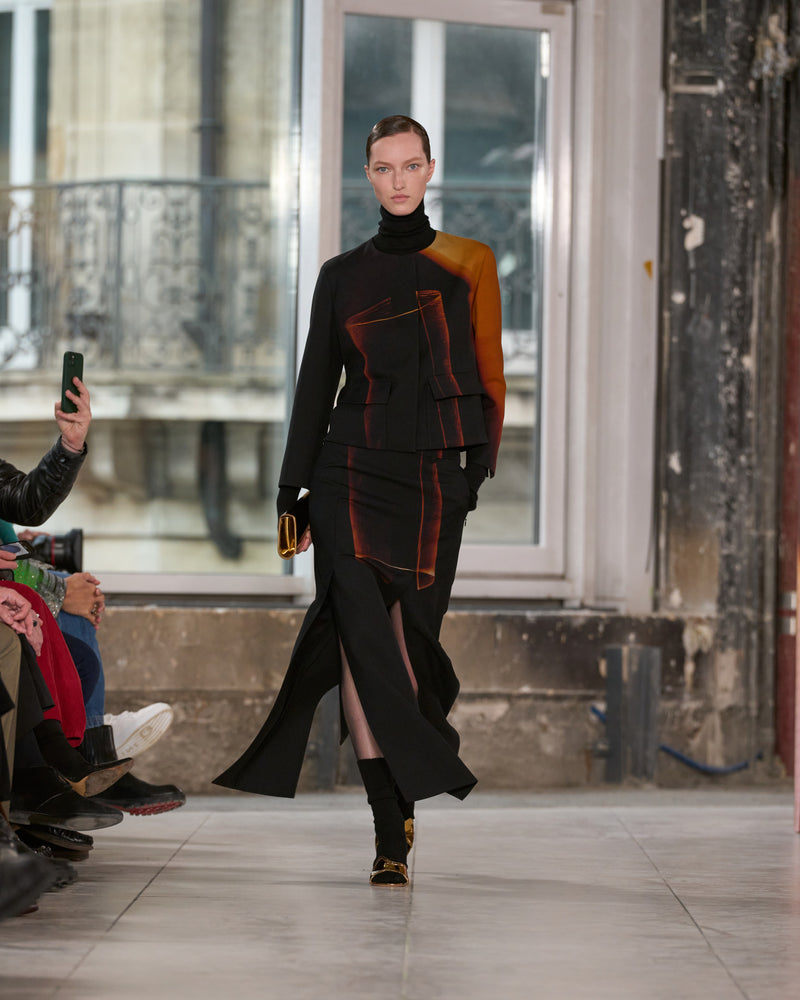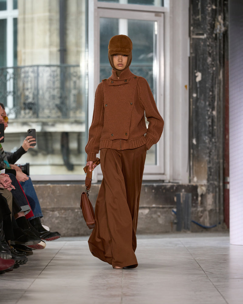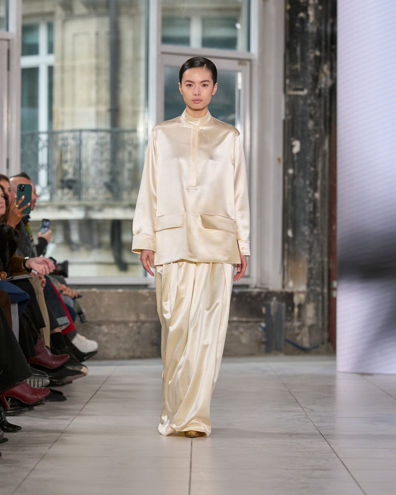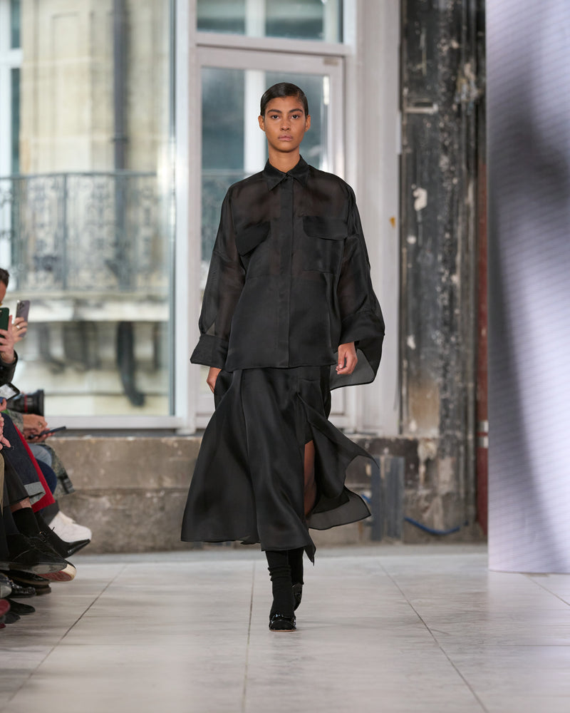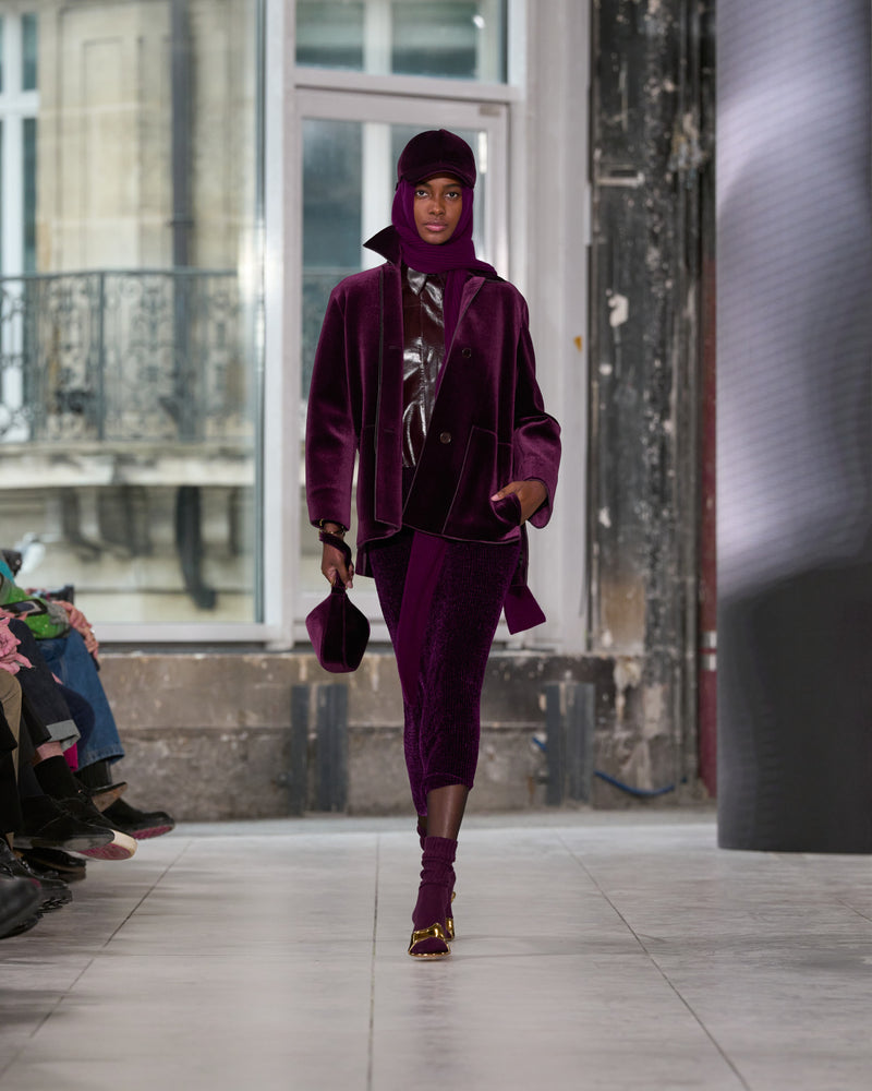 Diese Kollektion spricht nicht nur Frauen an, sondern erzählt ihre Geschichten. Sie handelt von ihren Widersprüchen und Routinen, von der nonchalanten Art und Weise, ein Cape über eine Jacke über einen Kaschmirpullover zu tragen, von der Fähigkeit, aus einem simplen Kleid ein Statement zu machen. Sie zeigt ihre Leidenschaft für Leder, ihre Liebe zu Uniformen, ihre Stärke, Sinnlichkeit und Dualität – all das ausgedrückt durch Mode.