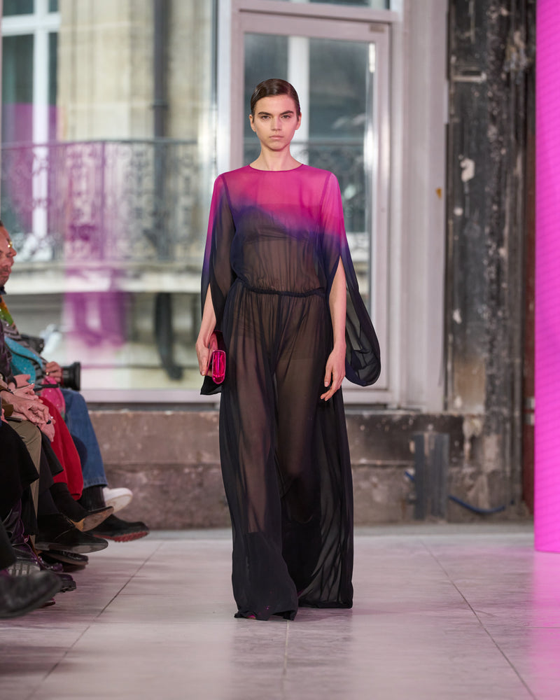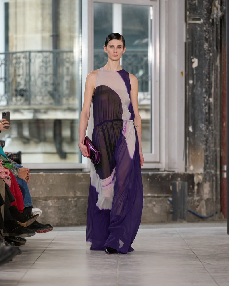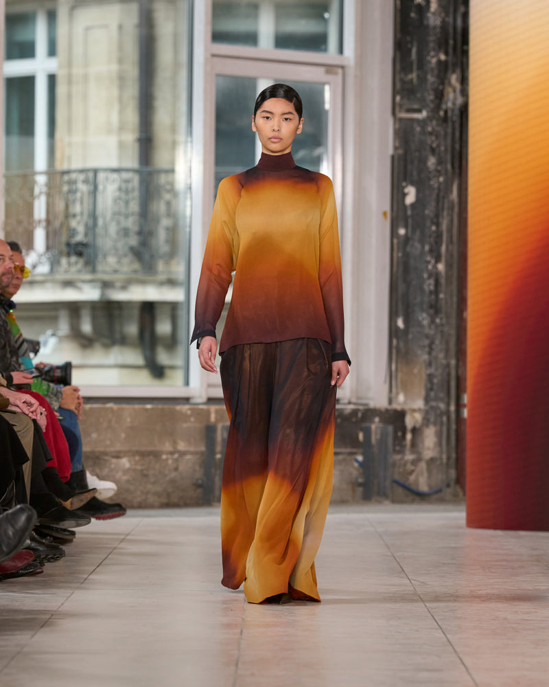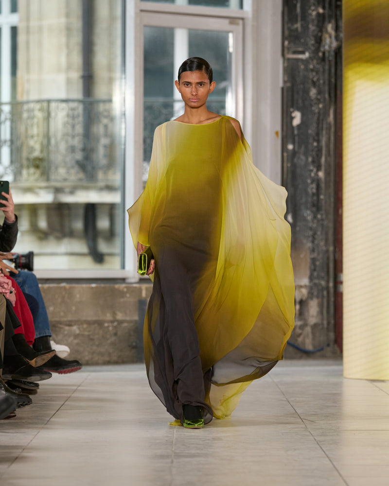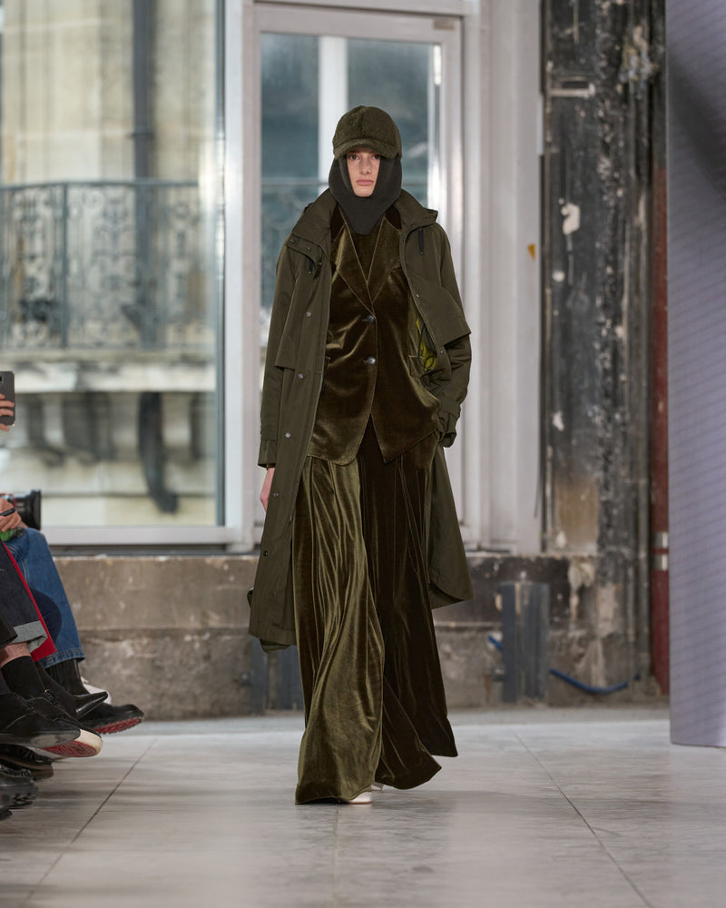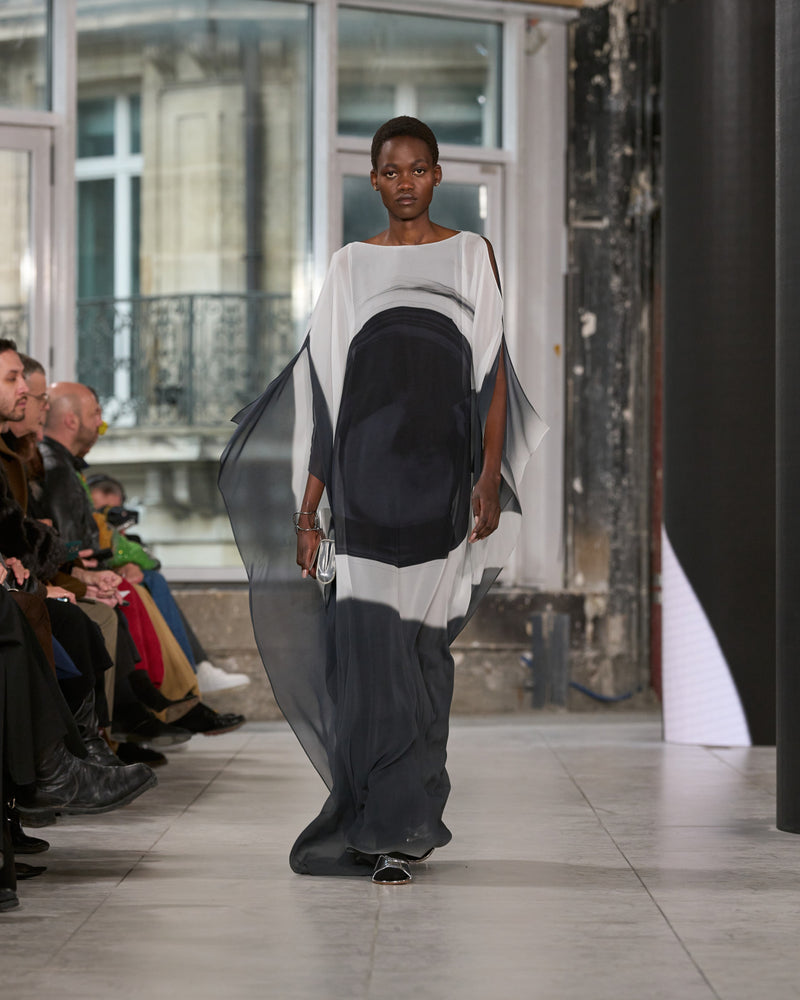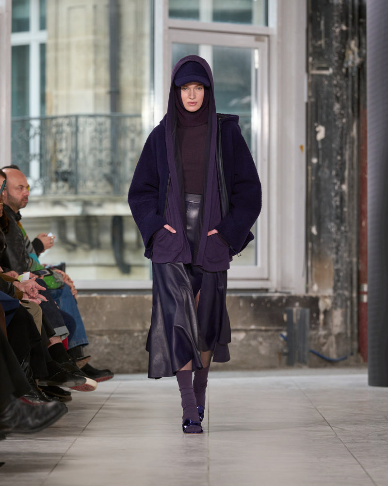 Akris Fall 2024 reflektiert die Dualität und das facettenreiche Leben der modernen Frau. Sie wird je nach Stimmung, Bedürfnis und Moment neu interpretiert: Transformation und Hybridisierung stehen im Mittelpunkt. Ein Mantel verwandelt sich in ein Gilet und eine Jacke. Ein Trenchcoat wird zu einem Kleid. Ein Rock erweist sich bei genauerem Hinsehen als Hose.