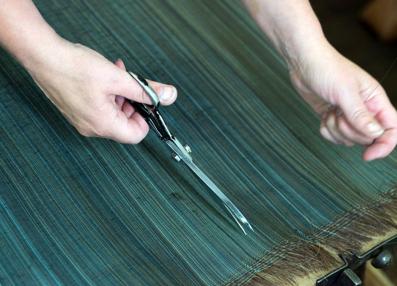 Die Fertigung feiner Rosshaar-Accessoires erfordert bei jedem Schritt handwerkliches Know-how. In seiner Verarbeitung ist Rosshaar anspruchsvoll, geradezu störrisch. Die historischen Webstühle, die 1872 eigens für diesen Zweck entwickelt wurden, verweben nur 2,5 Meter Stoff pro Tag, was das Material sehr selten macht.